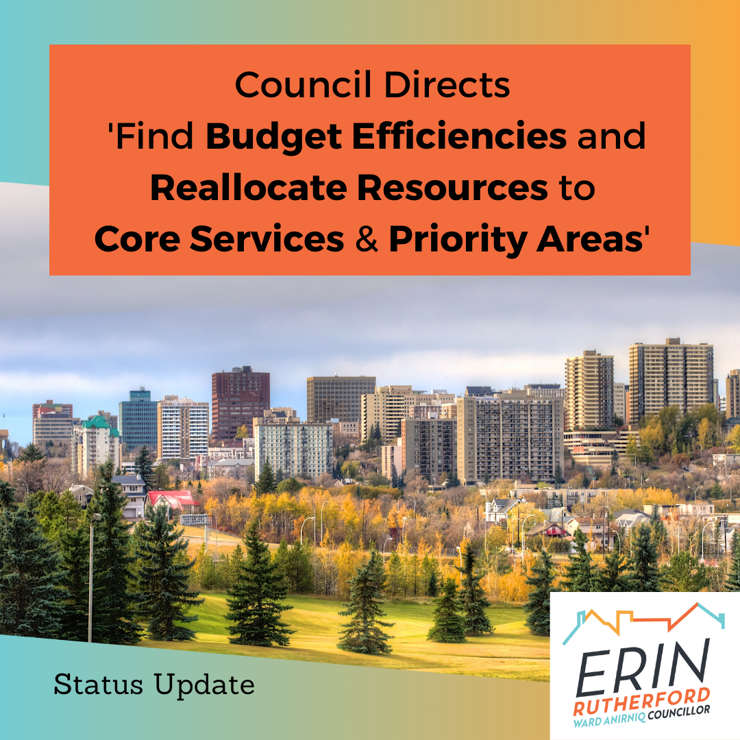 In combination with this, I recognize the importance of also needing to look internally for efficiency and to reallocate resources to where Edmontonians need services the most.