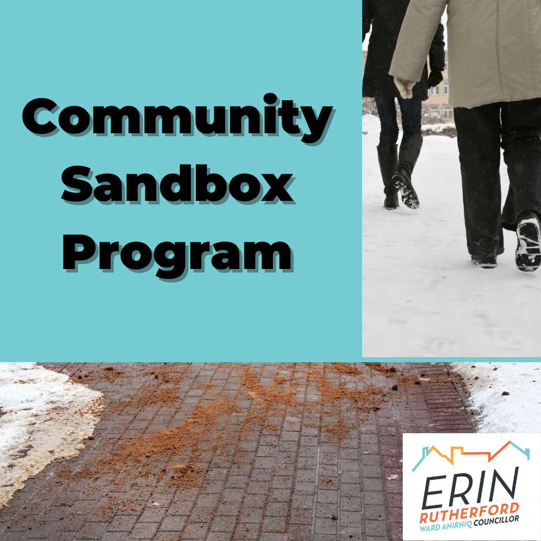 I know that the Community Sandbox program is well-loved by many residents within Ward Anirniq. I’ve heard from a number of people about how important this City-provided service is in keeping their pathways safe and accessible.